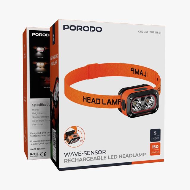 Porodo PDHDG08OG Wave-Sensor Rechargeable LED Headlamp