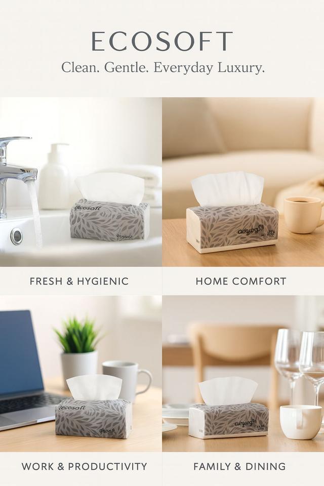Soft comfort becomes an everyday indulgence with these premium facial tissues crafted for families who value purity, gentleness, and strength in every sheet. Built with a plush three-ply construction, each pull delivers a cloud-soft feel while remaining strong enough for daily use, whether during skincare routines, office hours, or home moments. Dermatologically safe and designed for sensitive skin, these tissues offer clean, reliable comfort that elevates any room they’re placed in.