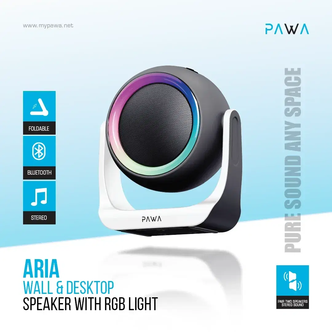 Aria Wall & Desktop Speaker With RGB Light - PW-SPWLTW55-BKWH