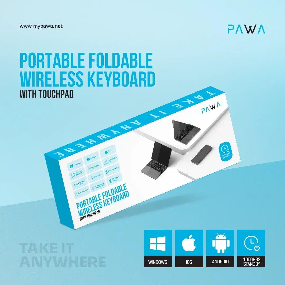 Portable Foldable Wireless Keyboard With Touchpad - PW-PKW2T5F2-GY