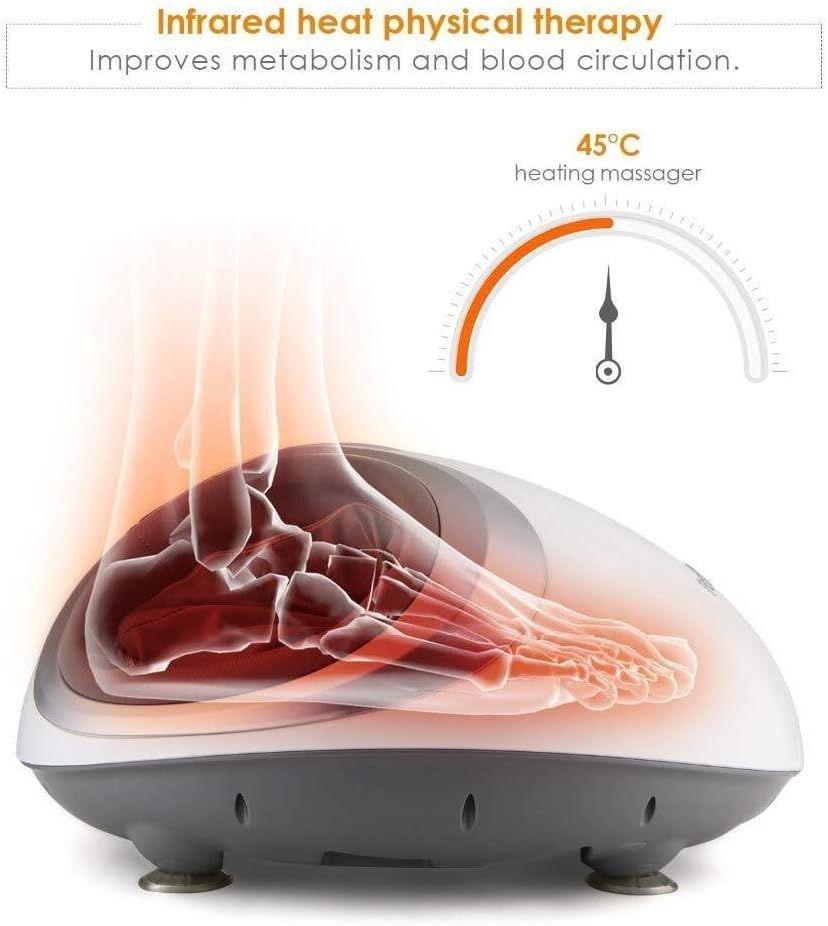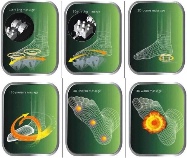 Deep kneading balls, heat, and air pressure for a full foot massage.