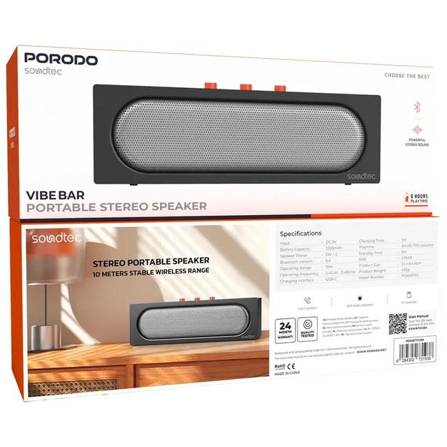 Porodo PDWBT512BK Soundtec Vibe Bar Portable Stereo Speaker