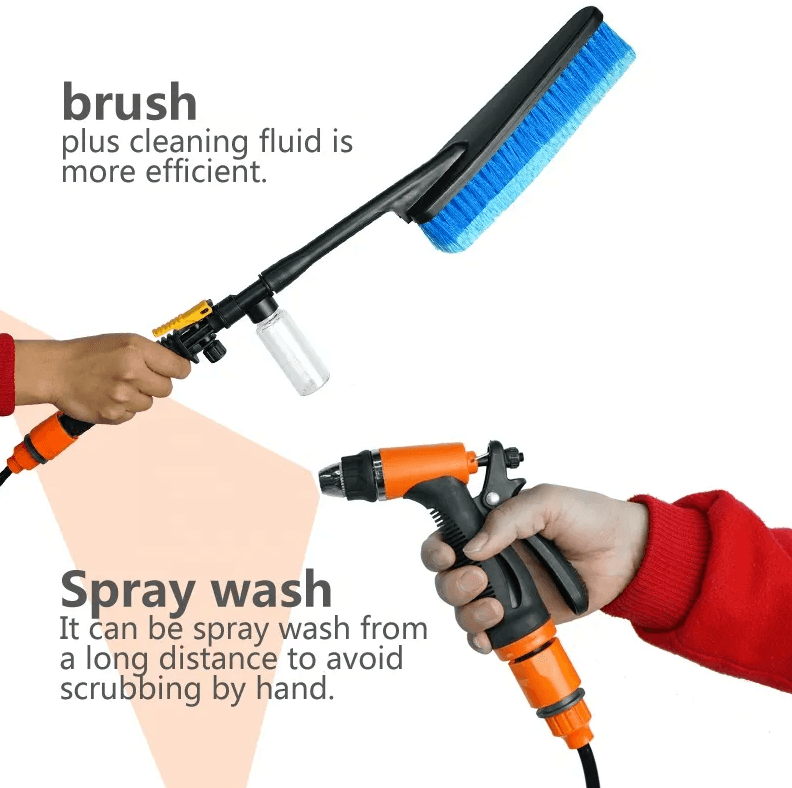Comes with a washing brush with internal fan nozzle for simultaneous spraying and brushing.