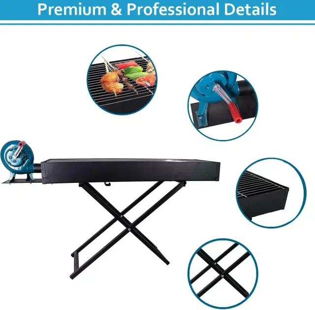 Experience the joy of outdoor grilling with our Windproof Foldable Charcoal Barbecue Grill. Equipped with a manual air blower, this large household smokeless barbecue stove ensures quick and efficient charcoal lighting. The foldable design makes it portable for camping, picnics, or backyard use. With temperature adjustment and control, the spacious Barbecue area accommodates gatherings of 2 to 15 people. The stainless steel furnace body guarantees durability, and the easy-to-clean design simplifies maintenance. This portable large camping charcoal barbecue grill is designed to cater to gatherings of 2 to 15 people, making it ideal for varied outdoor activities such as barbecue parties and camping adventures. Enjoy the perfect blend of convenience, versatility, and smoky flavors with our Windproof barbecue Grill – a must-have for outdoor cooking enthusiasts. Make every barbecue memorable with our versatile and convenient barbecue grill.