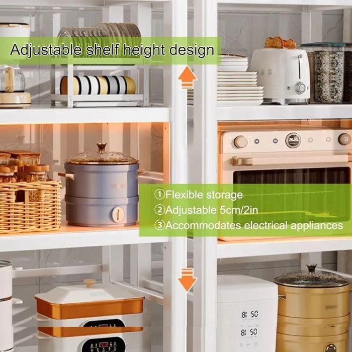 This high-quality organizer combines functionality and elegance, helping you organize your kitchen tools professionally. It features a strong and durable metal frame designed to last, with spacious shelves ideal for storing small appliances, cooking utensils, spice jars, or canned goods. It also comes with 360° rotating wheels for easy movement around the kitchen, giving you perfect organization and extra space to make your kitchen more organized and beautiful every day.