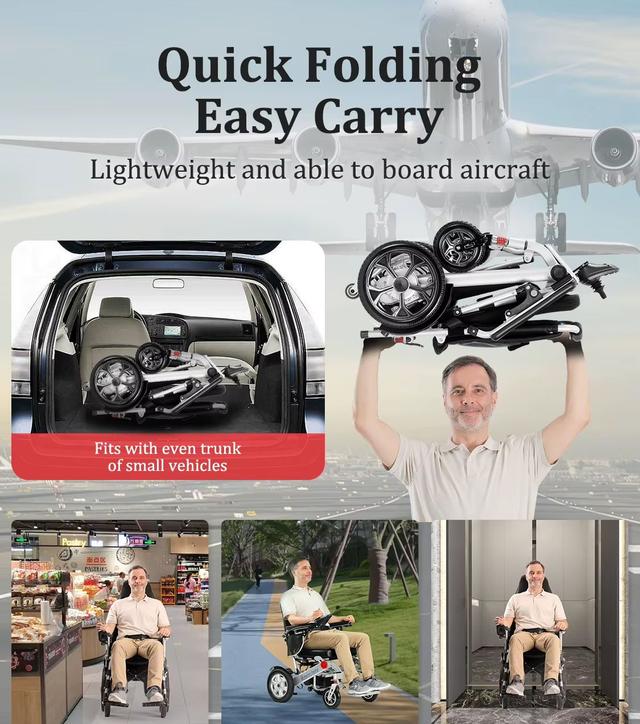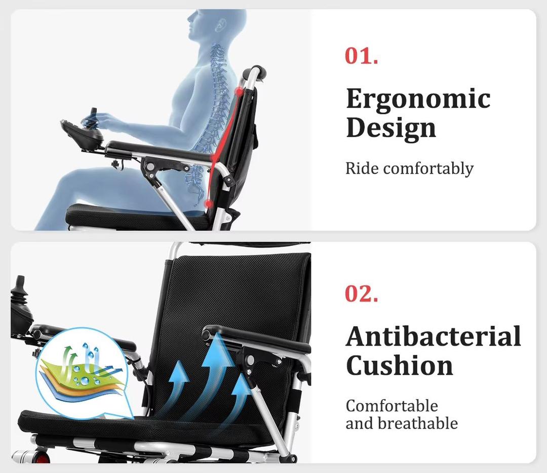 Lightweight Folding Electric Wheelchair with Dual Motor – 130kg Capacity