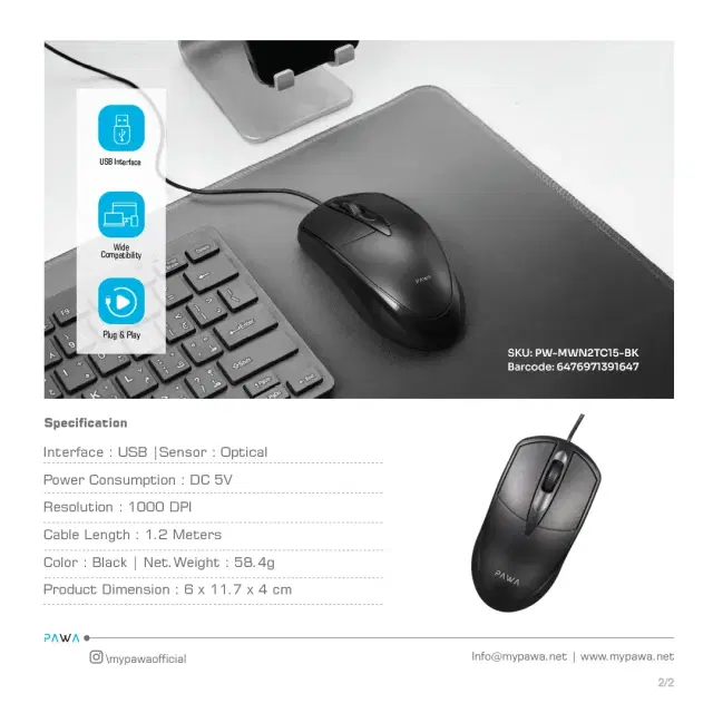 Pawa Wired optical mouse-PW-MWN2TC15